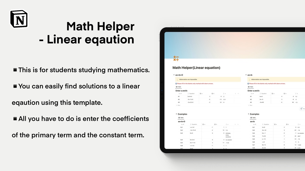 Notion Math Helper Template - Linear equation